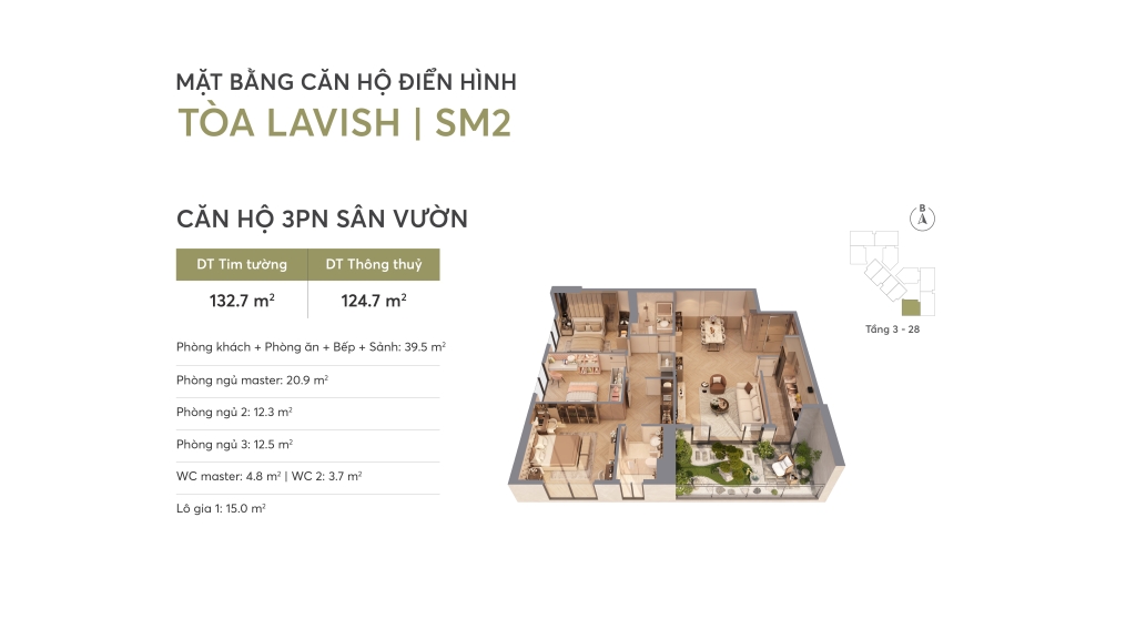 Tại Greenera Southmark, giấc mơ về một khu vườn giữa lòng thành phố đã trở thành hiện thực. Dòng căn hộ sân vườn 2–3–4 phòng ngủ được phát triển với diện tích sân vườn lên tới 15m², tương đương một phòng ngủ tiêu chuẩn – mở ra một mảnh thiên nhiên nhỏ giữa tầng không, nơi mỗi gia chủ có thể gieo vào đó một góc bình yên riêng.